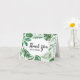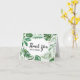 Cadre de conception de feuilles d'eau tropicale verte noir Merci de script noir du diplômé. À l'intérieur de la carte, des feuilles tropicaux coordonnés de couleur eau sont positionnés sur le dessus et le bas, vous donnant beaucoup de place pour vos notes de remerciement. Le dos est orné d'une feuille en forme de coeur avec personnalisable "Du bureau de..."