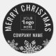 Schwarzweiß Weihnachtsaufkleber personalisiert mit Firmenname und Firmenlogo für berufliches Branding .