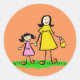 Mère et fille se tiennent la main. La robe de la mère dit "maman" et la robe de la petite fille dit "moi". Les parents et les enfants sont asiatiques avec la peau claire. Cette image de famille de parents et d'enfants est également présentée dans plusieurs options de famille ethnique, y compris un simple dessin de ligne. Personnalisez les autocollants de famille avec des noms de famille ou un message personnel pour un cadeau spécial de la mère ou de la mère et de la fille! Vous pouvez fabriquer des autocollants personnalisés pour un cadeau spécial de la Fête des Mères, une nouvelle maman et/ou un nouveau bébé, une réunion de famille ou d'autres cadeaux d'art familial customisés!