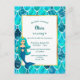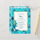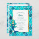 Une sirène girly et sous la mer thème 9ème anniversaire de fête d'invitation carte avec écailles de sirène vert turquoise et menthe. Un cadre en faux or, et une sirène de princesse portant une couronne. Modèles pour le nom de l'enfant et les détails de la fête, lettres vert mer.
