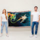Eine weiße Haaresaidjungfrau mit einem dunkelgrünen Drachen im Meer