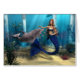 3D digital render of a cute mermaid and dolphin on blue fantasy ocean background