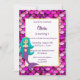 Eine elegante Meerjungfrau und unter dem Meeresthema 3. Geburtstagskarte mit rosa und Lila Meerjungfrauen. Ein schicker Imitat vergoldet Rahmen, und eine Prinzessin Meerjungfrau mit einem lila Imitat Glitzer Kleid und eine Krone. Vorlagen für den Namen des Kindes und Party, schwarze Buchstaben.