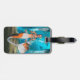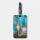 3D digitale Darstellung einer niedlichen Meerjungfrau mit blauen und grünen Haaren und gelber Wasserlilie auf blauem Fantasy-Hintergrund