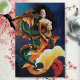 Eine Meerjungfrau mit einem Koi-Fisch-Schwanz ist in das Wasser mit einem grünen chinesischen Wasserdrachen.
