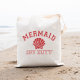 Lassen Sie Ihren Schwanz mit unserer niedlichen Meerjungfrau-Tasche für einen weiteren Tag weg! Unsere sommerliche Tasche ist perfekt für Ihre Strandessentials und lasse jedem zu wissen, dass Ihre Verlagerung vorbei ist. Das Vintage Design in "Mermaid Off Duty" im roten Kollegialstil mit einer ansprechenden Abbildung.