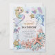 Eine magische Geburtstagsfeier unter der Meeresszene mit Muscheln, Delphin, Korallen, Schildkröten und Seestern. Hübsche Wasserfarbe mit niedlicher Meerjungfrau. Erstellen Sie ein magisches skurriles Thema für eine Sommersaison Geburtstag, um für jedes Alter von 1-6 Jahren oder älter anpassen.