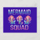 Mermaid-Postkarte mit Trio von Meerjungfrauen mit regenbogenfarbenem Haar und voller Schwanz,