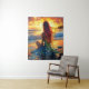 Immerse yourself in this breathtaking fantasy artwork featuring a mystical mermaid with flowing rainbow-colored hair, seated gracefully at the ocean's edge during a stunning golden sunset. The vibrant interplay of warm amber, crimson, and cool turquoise tones creates a mesmerizing atmosphere, while powerful waves crash against the rocky shore. This enchanting piece captures the magic of mythical beauty and the raw power of nature, making it a perfect statement piece for any room seeking wonder and inspiration.