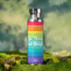 Schöne Gay Pride Weihnachtswasserflasche in hübschen Regenbogenfarben, die lautet Be Merry and Bright. Seien Sie laut und stolz auf den herrlichen LGBTQ-Feiertag.