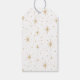 Elegante und moderne Geschenketiketten mit "Merry and Bright", die in einem weißen, handgeschriebenen Drehbuch dargestellt sind, das von einem Rand von weißen Sternen mit goldenem Hintergrund gerahmt ist. Passen Sie die fröhlichen und hellen Geschenketiketten an, indem Sie Ihren Namen hinzufügen.