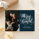 Merry und Bright Blue Calligraphy Moderne Foto Holiday Card. Senden Sie Ihren personalisierten und individuell gestaltbaren Urlaub an Freunde, Kollegen und Familie in schlichten, eleganten und modernen Foto Design festliche, natürliche minimalistische Stilkarten! Unter der Kalligrafie finden Sie Ihre persönliche Grußbotschaft in der modernen Typografie.