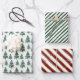 Merry & Bright Christmas Trees & Stripes Set von 3 Geschenkpapier Set