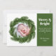 Dieses Design verfügt über einen Tannenkranz mit einem Foto Ihrer Wahl. Diese Grußkarte ist die perfekte Wahl, um dieses Weihnachten Freude zu vermitteln! Personalisieren Sie es mühelos.