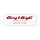 Merry & Bright! Fun Retro Vintage Typografie Weihnachten Urlaub Rücksendeadressen-Aufkleber in Süßes Streifen rot.
