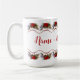 Les couleurs blanches et rouges sont audacieuses et fraîches pour les vacances. Cette tasse a une bordure de guirlandes de poinsettia rouge vif sur le dessus et le fond. Un message amusant, "Votre nom" soit joyeux et lumineux !" Profitez de votre café", et partagez-en un pour un ami.