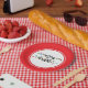 This paper plate is shown with a festive Christmas holiday Merry & Bright lights print.
