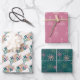 Merry & Bright pink grüne Goldschneeflocken & Bäum Geschenkpapier Set
