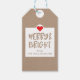Feiern Sie die magische und festliche Urlaubssaison mit unseren individuellen Geschenkmarken. Unser trendiges und stilvolles Urlaubsdesign zeichnet sich durch "Merry & Bright" aus, die in einer lustigen Schreibweise in Imitat-Braunpapier-Textur entworfen wurde. Oben kommt ein leuchtend rotes Herz hinzu. Die Rückseite ähnelt einem Weihnachtskalender für Feiertage. Sie können die Textgröße, Textfarbe, Schriftart und Layout für Ihre individuelle Designvorliebe anpassen.