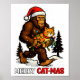 Merry Catmas Bigfoot And Lights Santa Hat Funny Ca Poster