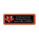 This festive Christmas bowling return address label features Santa-themed bowling pins and a bright red holiday bowling ball set against a cheerful Christmas plaid background the perfect design to spread seasonal fun and party cheer.