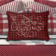 Merry Christmas Red Gingham Tan Script Typografie Dekokissen