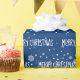 White MERRY CHRISTMAS Text mit Schneeflocken auf blauem Hintergrund. Text und Farbe können bearbeitet werden. Die Hintergrundfarbe kann geändert werden.