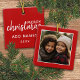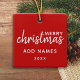 Ornement En Céramique Joyeux Noël avec une photo Carré - rouge