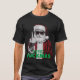 Eine mutige und satirische Illustration des Weihnachtsmannes in einem traditionellen roten Anzug, die einen trotzigen Mittelfinger mit cooler schwarzer Sonnenbrille trägt.