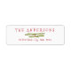 Eine unterhaltsame und festliche Rücksendeadresse für Ihre Feiertagsgrüße bietet ein hübsches Grün- und Rotwängelbanner und Ihren personalisierten Familiennamen und Ihre Adresse in spielerischen Schriftart.
