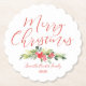 Feiern Sie die Ferien in diesem Jahr mit diesem eleganten Weihnachtsgeschirr-Untersetzer. Es enthält die Worte "Frohe Weihnachten" in roten formalen Schriftzeichen.