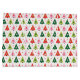 Ein Retro-Stil Mitte des Jahrhunderts Weihnachtsbaummuster mit Dreiecken, Sternen, Schneeflocken und diagonalen Streifen. Die Farben sind rot, grün, rosa und weiß.