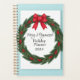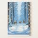 Ein atemberaubendes Weihnachtsplanerdesign mit einer schön detaillierten Frontabdeckung mit einem festlichen Kranz, der mit Heiligen, Beeren und einem roten Bogen geschmückt ist, und einer friedlichen Schneewaldszene mit Hirsch und funkelnden Lichtern auf der Rückseite. Ideal, um während der Ferienzeit bleibe.