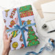 Verbringen Sie Ihren Urlaub fröhlich mit diesem lebhaften Verpackungspapier, das eine bunte Auswahl an Ornamenten, funkelnden Lichtern und festlichen Phrasen zeigt. Es ist der perfekte Weg, um Ihre Geschenke glänzen zu lassen