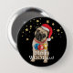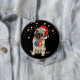 Dieses niedliche Button zeigt einen bezaubernden Mops, der 3 Weihnachtsschmuck auf einem Band um den Hals und eine rote Weihnachtsmannmütze trägt. Goldstars funkeln über ihm. Text liest Merry WOOFmas!