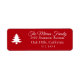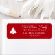 Einfache weiße Ferienbaum auf festlichem, rotem Hintergrund, Rücksendeadressen-Aufkleber. Anpassen von Stil, Farbe und Größe des Schriftartes. Entworfen, um unsere Merry Wishs Kollektion zu erfüllen.