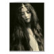 Photographie vintage d'une jeune femme avec les cheveux très très longs, un regard sérieux sur son visage comme elle semble de haut en bas et un petit bandeau en métal