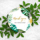 Carte chic avec une aquarelle feuille de palmier tropicale et jolies fleurs jaunes avec message de remerciement. Cette belle carte fait partie de notre collection de week-end de bachelorette et est également parfaite pour de nombreuses occasions, comme le message de remerciement a texte modifiable.