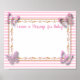 Un poster de papillon rayé rose et blanc sucré où les invités à votre baby shower peuvent laisser un message pour bébé.