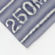Grafisches Foto der Wörter "250mm", in Weiß, auf lila Weiß, Dunkelblau und Schwarz dargestellt, Hintergrund ist ein Maßelement im Metric System.