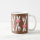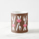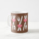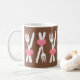 Tasse mit dem Braun, das ein weißes Gabel- u. Messermuster mit rosa Herzen enthält.