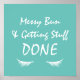 Niedliches und stilvolles motivierend Plakat in Weiß und aquamarin mit der Phrase "chaotischer Bun and get stuff done" in Skripten.