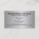 Dieses industrielle schauende Metall, das Geschäftskartenschablone recycelt, ist mit einem digitalen Hintergrund in einer silbernen Farbe entworfen, um Metall und einen einfachen Textplan mit Vorlagen darzustellen, die Sie leicht online besonders anfertigen können. Geschaffen für eine recycelnde Pflanze, die Metallschrott recycelt.