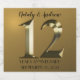 12 Jahre gemeinsam feiern. Glücklicher 12. Hochzeitstag. goldenes Metalletikett