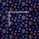 Abstrakte, elegante Gold-, Rosa-, Silber- und Kupfer-Metallic-Kreise in nahtlosem Muster mit handgezeichnet Strippenstruktur abgeschieden auf dunkelblauem Hintergrund.