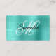 Erstellen Sie Ihre eigenen Imitate türkis aquamarinen Folie Visitenkarten. Auf der Vorderseite befindet sich ein extravagant-schwarz-weißes Schriftzeichen-Monogramm. Auf der Rückseite finden Sie grundlegende Kontaktinformationen. Sie können die Schriftart und Text nach Bedarf anpassen. Alle mädchenhaften Grafiken in diesem Design werden wie ein digitales Foto gedruckt.