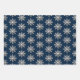 Lassen Sie sich mit unserer exquisiten Metallic Snowflake Wrapping Paper Kollektion verzaubern. Jedes Blatt hat einen reichhaltigen marineblauen Hintergrund mit eleganten metallischen Schneeflocken, der Ihren Geschenken eine Touch Winterverzauber verleiht. Wählen Sie aus drei fesselnden Designs: eine strukturierte Wiederholung größerer Schneeflocken, eine delikate Anordnung kleinerer, spärlicher Schneeflocken und ein Bio Design, das um eine auffallende große Schneeflocke mit verstreuten kleineren zentriert ist. Diese hochwertigen Packpapierblätter verleihen Ihren Urlaubsgeschenken einen eleganten und festlichen Charme und sorgen für eine unvergessliche Präsentation, die den Geist der Saison perfekt einfängt. Lassen Sie Ihre Geschenke mit diesen sorgfältig gefertigten und einzigartig gestalteten Packpapier-Blättern glänzen.