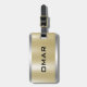 Dieses Gepäckanhänger-Design weist einen Hintergrund aus metallischem Gold und Silber auf, mit personalisierbarem Text in Schwarz.