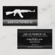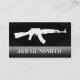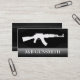 Metallstahl und Gewehr-Waffengeschäft-Visitenkarten. Eine große schauende Kartenaufmachung ein Metallhintergrund auf Schwarzem mit einer kundenspezifischen Maschinengewehr-Silhouette auf ihr. Groß für irgendein Waffengeschäft.
