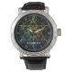 Uhr, Vintage Männeruhr mit schwarzem Lederarmband